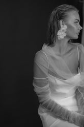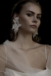 Make a statement with tons of texture + cascading chiffon florals. Sheer petals make a statement without weighing you down.