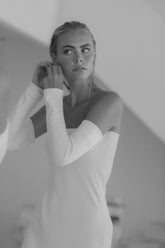 ・ Think effortless crepe, cascading silk, or contemporary lace when styling this piece.