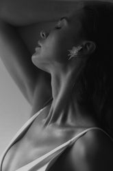 Charlee Floral Tier’s modern sister - the Charlee Stud. A bundle of blooms with glass accents creates dimension and an awe-inspiring look.