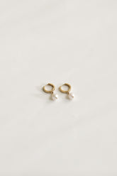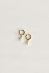 An ivory pearl delicately suspends from a golden mini hoop, effortlessly adding fluidity without any unnecessary fuss. This versatile accessory is perfect for your wedding day, everyday wear, date nights, and beyond.