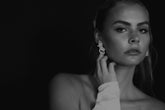 ・ Pairs beautifully with a sleek updo or loose romantic strands.