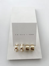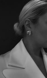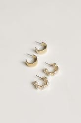 A sleek semi-hoop stacked with studded pearl beads - the ultimate pairing for the subtle + unique.
