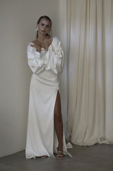 Maj goes mini— same glistening ivory beading paired down for a splash of tonality + everlasting drama.