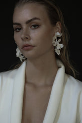 Tonal petals cascade down strands of glistening ivory beading in this modern rendition of an ultra-romantic bridal moment.