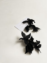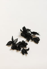 Dramatic black petals cascade down strands of dark glistening beads in this moody rendition of an anti-bridal moment— for date night, daily, vacay + beyond.