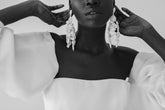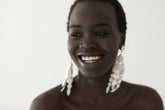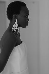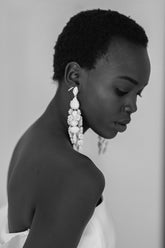 ・ Style with swept-back hair to allow this dramatic earring the space to move.