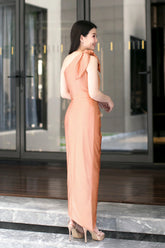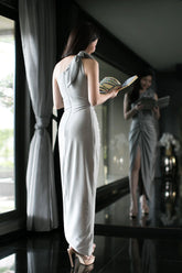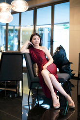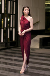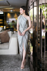 上質な4Wayストレッチのスパンデックス生地を使用し、美しさと着心地の良さを兼ね備えたワンショルダーロングドレスBELLA