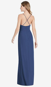 Both practical and elegant, this sheer crepe maxi dress offers convenient side pockets built in to its full skirt with front pleats. Its stellar fit receives a design upgrade with a v-neckline and crisscross spaghetti strip detailing at its open back. An inset midriff at the natural waistline creates flattering proportionality.