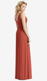 Update your bridesmaid look with this lovely sleeveless maxi dress in lux chiffon. The lightly fitted bodice features a contoured V-neckline with plunging V-back and a high waistline. Convenient pockets are a practical touch, discreetly hidden in the gently pleated floor length maxi skirt of this flattering special occasion dress.