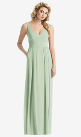 Update your bridesmaid look with this lovely sleeveless maxi dress in lux chiffon. The lightly fitted bodice features a contoured V-neckline with plunging V-back and a high waistline. Convenient pockets are a practical touch, discreetly hidden in the gently pleated floor length maxi skirt of this flattering special occasion dress.