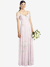【STYLE: 1526】Cold-Shoulder V-Back Chiffon Maxi Dress【COLOR: Watercolor Print】