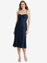 【STYLE: 1533】Lace Bustier Midi Dress with Spaghetti Straps【COLOR: Midnight Navy】