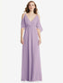 【STYLE: 1547】Convertible Cold-Shoulder Draped Wrap Maxi Dress【COLOR: Pale Purple】