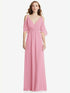 【STYLE: 1547】Convertible Cold-Shoulder Draped Wrap Maxi Dress【COLOR: Peony Pink】