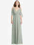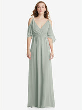 Transform your look into a stunning vision of flowy, feminine elegance. This gorgeous, lux chiffon maxi dress flaunts an alluring, draped design with a convertible cold shoulder split sleeve, V-neck wrap bodice, and a full shirred skirt that moves with you.