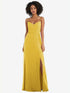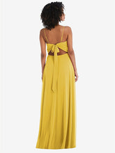 Show off your shoulders with this show stopping spaghetti strap lux chiffon maxi dress. The bikini top features an adjustable tie back, allowing the dress to hug your curves in all the right places. A tasteful modified circle skirt makes this elegant dress appropriate for most any formal occasion.