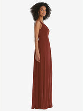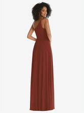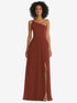 【STYLE: 1555】One-Shoulder Chiffon Maxi Dress with Shirred Front Slit【COLOR: Auburn Moon】