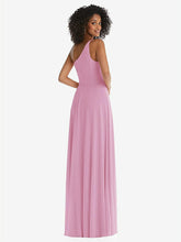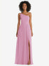 【STYLE: 1555】One-Shoulder Chiffon Maxi Dress with Shirred Front Slit【COLOR: Powder Pink】