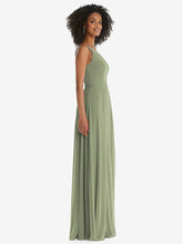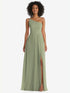 【STYLE: 1555】One-Shoulder Chiffon Maxi Dress with Shirred Front Slit【COLOR: Sage】
