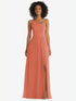 【STYLE: 1555】One-Shoulder Chiffon Maxi Dress with Shirred Front Slit【COLOR: Terracotta Copper】