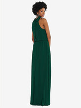 【STYLE: 1562】Scarf Tie High Neck Blouson Bodice Maxi Dress with Front Slit【COLOR: Hunter Green】