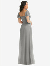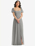 【STYLE: 1567】Puff Sleeve Chiffon Maxi Dress with Front Slit【COLOR: Chelsea Gray】