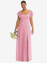 This flirty and feminine lux chiffon maxi dress is ideal for romantic weddings and garden parties. Featuring a pretty square neckline, dreamy flutter sleeves, and an open scoop back, you will look and feel gorgeous. While the flowing, modified circle skirt with a front slit offers maximum freedom of movement. This chic full-length dress will be your new favorite party dress!