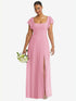 【STYLE: 1568】Flutter Sleeve Scoop Open-Back Chiffon Maxi Dress【COLOR: Peony Pink】