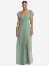【STYLE: 1568】Flutter Sleeve Scoop Open-Back Chiffon Maxi Dress【COLOR: Seagrass】