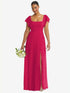 【STYLE: 1568】Flutter Sleeve Scoop Open-Back Chiffon Maxi Dress【COLOR: Vivid Pink】