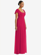 This flirty and feminine lux chiffon maxi dress is ideal for romantic weddings and garden parties. Featuring a pretty square neckline, dreamy flutter sleeves, and an open scoop back, you will look and feel gorgeous. While the flowing, modified circle skirt with a front slit offers maximum freedom of movement. This chic full-length dress will be your new favorite party dress!