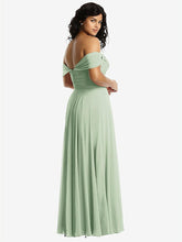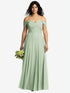 【STYLE: 2970】Off-the-Shoulder Draped Chiffon Maxi Dress【COLOR: Celadon】