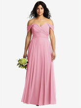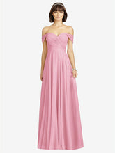 【STYLE: 2970】Off-the-Shoulder Draped Chiffon Maxi Dress【COLOR: Peony Pink】
