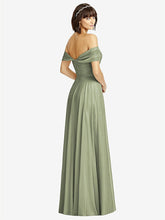 An exquisite royal aesthetic stands out and impresses in this luscious full-length lux chiffon dress. Gorgeous detailing features an off-the-shoulder bodice with a draped crossover styling, and a modified circle skirt that offers free movement and a balanced profile.