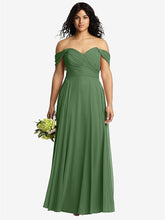 【STYLE: 2970】Off-the-Shoulder Draped Chiffon Maxi Dress【COLOR: Vineyard Green】