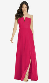 【STYLE: 3041】Strapless Notch Chiffon Maxi Dress【COLOR: Vivid Pink】