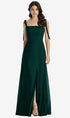 【STYLE: 3042】Tie-Shoulder Chiffon Maxi Dress with Front Slit【COLOR: Evergreen】
