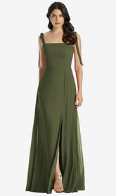 【STYLE: 3042】Tie-Shoulder Chiffon Maxi Dress with Front Slit【COLOR: Olive Green】