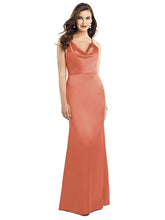 Striking full length cowl slip dress in lux charmeuse fabric stops the room and makes the night completely yours. An open back with crisscross spaghetti straps and loosely draped neckline detail lends fun and flirty style.