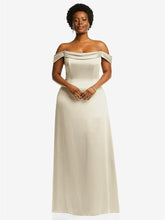 This soft and flowing A-line skirt maxi dress is cut from lux charmeuse fabric that offers a silken touch. A pleated off-the-shoulder neckline offers a swag detail and reveals bare shoulders for a romantic, flirty look.