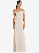 This soft and flowing A-line skirt maxi dress is cut from lux charmeuse fabric that offers a silken touch. A pleated off-the-shoulder neckline offers a swag detail and reveals bare shoulders for a romantic, flirty look.