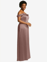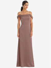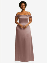 This soft and flowing A-line skirt maxi dress is cut from lux charmeuse fabric that offers a silken touch. A pleated off-the-shoulder neckline offers a swag detail and reveals bare shoulders for a romantic, flirty look.