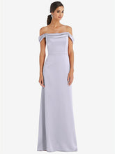 This soft and flowing A-line skirt maxi dress is cut from lux charmeuse fabric that offers a silken touch. A pleated off-the-shoulder neckline offers a swag detail and reveals bare shoulders for a romantic, flirty look.