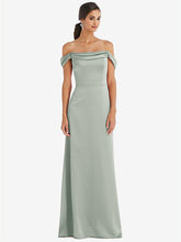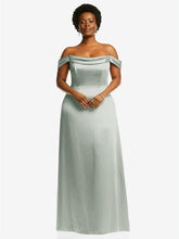 This soft and flowing A-line skirt maxi dress is cut from lux charmeuse fabric that offers a silken touch. A pleated off-the-shoulder neckline offers a swag detail and reveals bare shoulders for a romantic, flirty look.