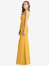【STYLE: 3081】Halter Maxi Dress with Cascade Ruffle Slit【COLOR: NYC Yellow】