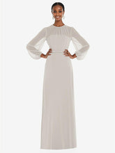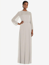 Light up the dance floor in the flowing beauty of this lux chiffon maxi dress with bow belt trimmed floor-length circle skirt. A whisper-thin, blouson overlay lends a hint of mystery to its formal, shirred jewel neckline and bishop sleeves. Soft and sophisticated, this dress is perfect for a bridesmaid.