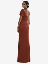 Accentuate your sleek style with the elegant twist cuff neckline featured on this formal one-shoulder dress. Beautiful lux charmeuse fabric flows like water through a princess silhouette and a soft trumpet skirt with a chic slit perfect for dancing the night away.