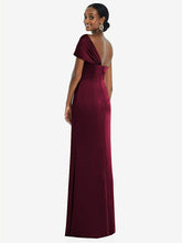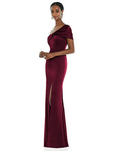 Accentuate your sleek style with the elegant twist cuff neckline featured on this formal one-shoulder dress. Beautiful lux charmeuse fabric flows like water through a princess silhouette and a soft trumpet skirt with a chic slit perfect for dancing the night away.