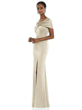 Accentuate your sleek style with the elegant twist cuff neckline featured on this formal one-shoulder dress. Beautiful lux charmeuse fabric flows like water through a princess silhouette and a soft trumpet skirt with a chic slit perfect for dancing the night away.