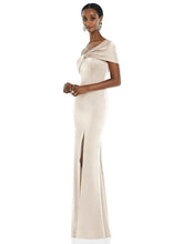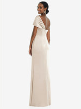 Accentuate your sleek style with the elegant twist cuff neckline featured on this formal one-shoulder dress. Beautiful lux charmeuse fabric flows like water through a princess silhouette and a soft trumpet skirt with a chic slit perfect for dancing the night away.
